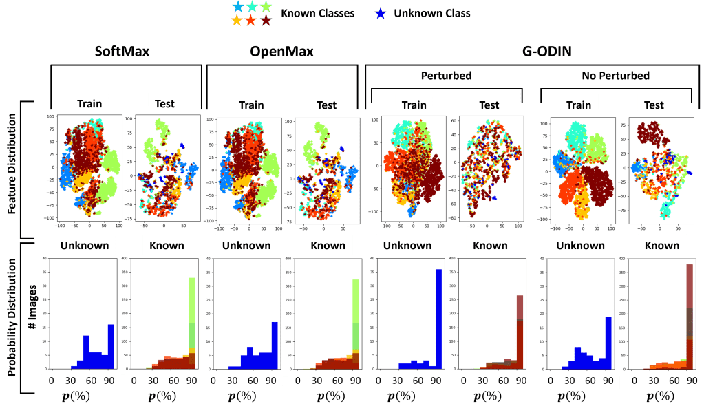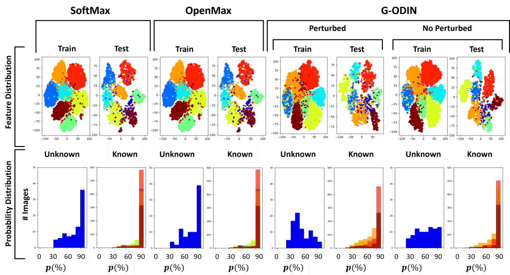 - G-ODIN: a model for identifying out-of-distribution data. G-ODIN takes an image classifier and splits the output into two functions, one to approximate the probability of the input of belonging to the in-distribution domain, and the other one predicting the joint probability of the input of belonging both to the in-distribution domain and to a known class.